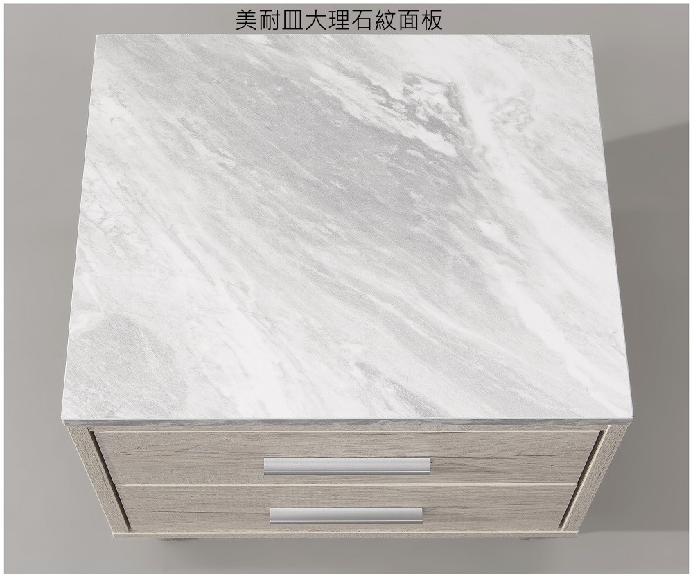 抽屜底板為5mm夾板 桌面採美耐皿大理石紋面板