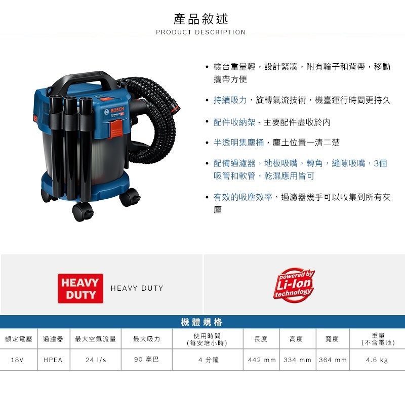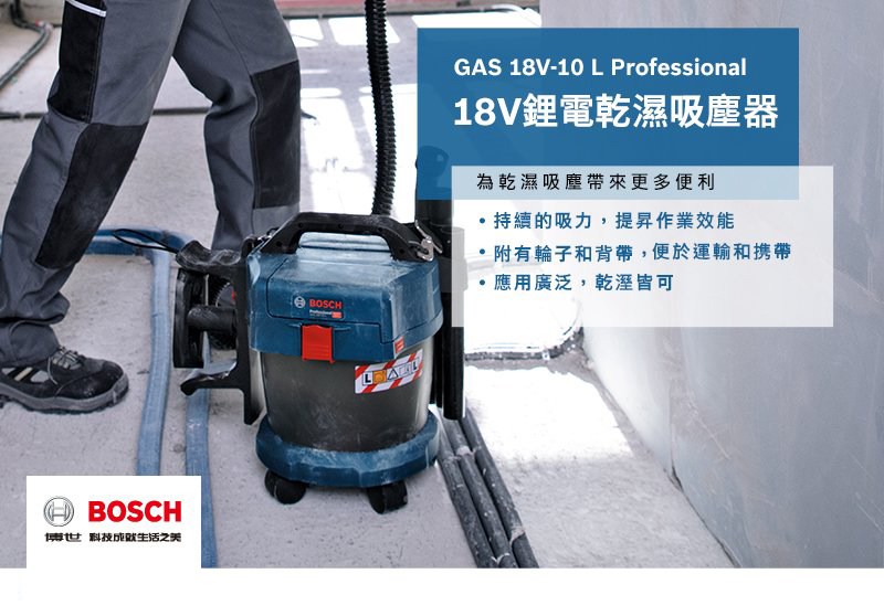 博世 BOSCH 18V 鋰電乾濕兩用吸塵器 GAS 18V-10 L 空機(不含電池、充電器)