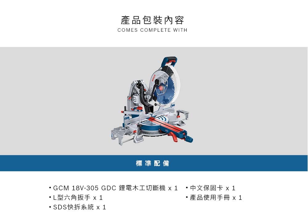 BOSCH博世 18V鋰電無刷12吋木工切斷機(空機-不含鋸片)GCM 18V-305 GDC