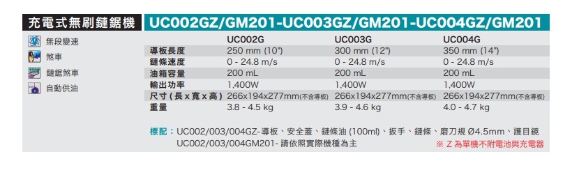 牧田UC002GM201 40V無刷鏈鋸機(40V 4.0A*2)
