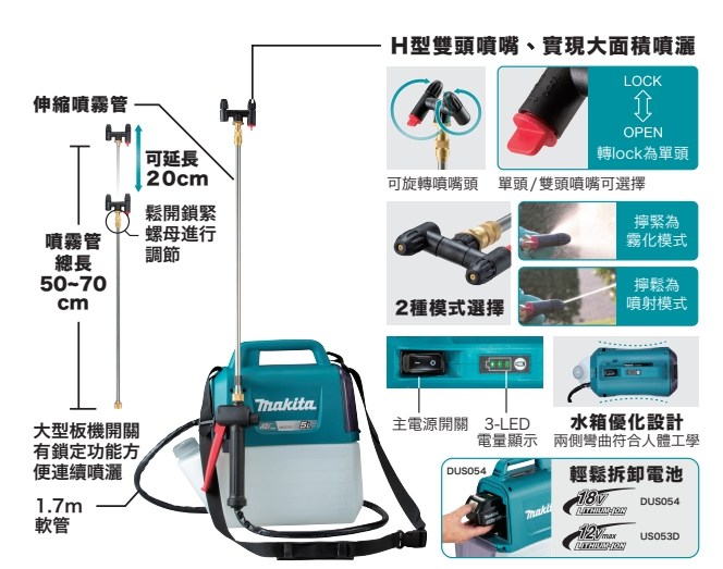 牧田 DUS054Z 18V側背噴霧機(單主機 無電池 無充電器)