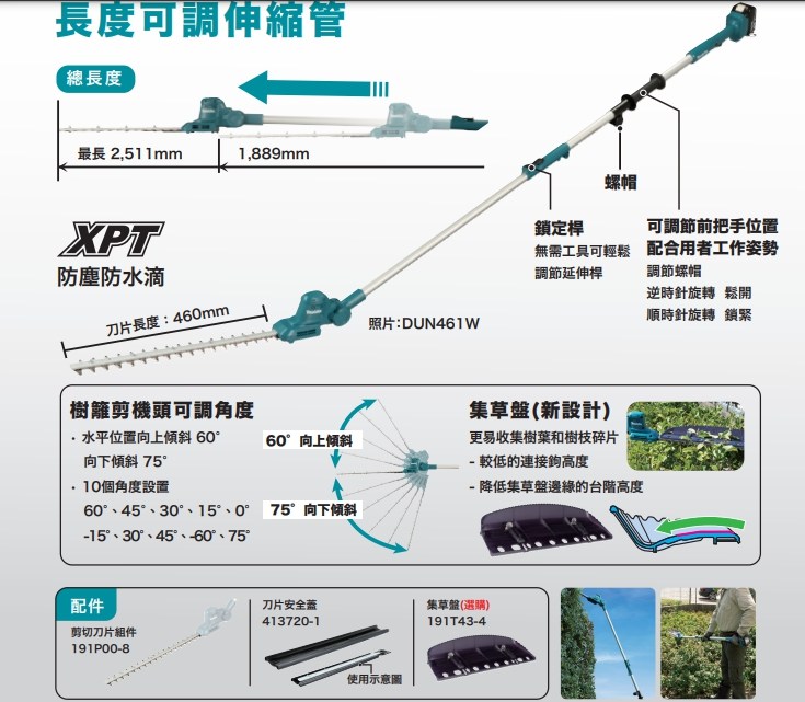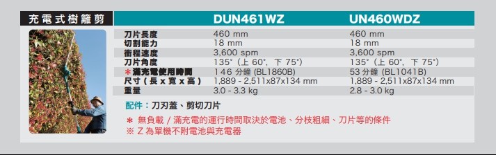 牧田DUN461WZ 18V樹籬剪(可調角度)(單主機無電池無充電器)