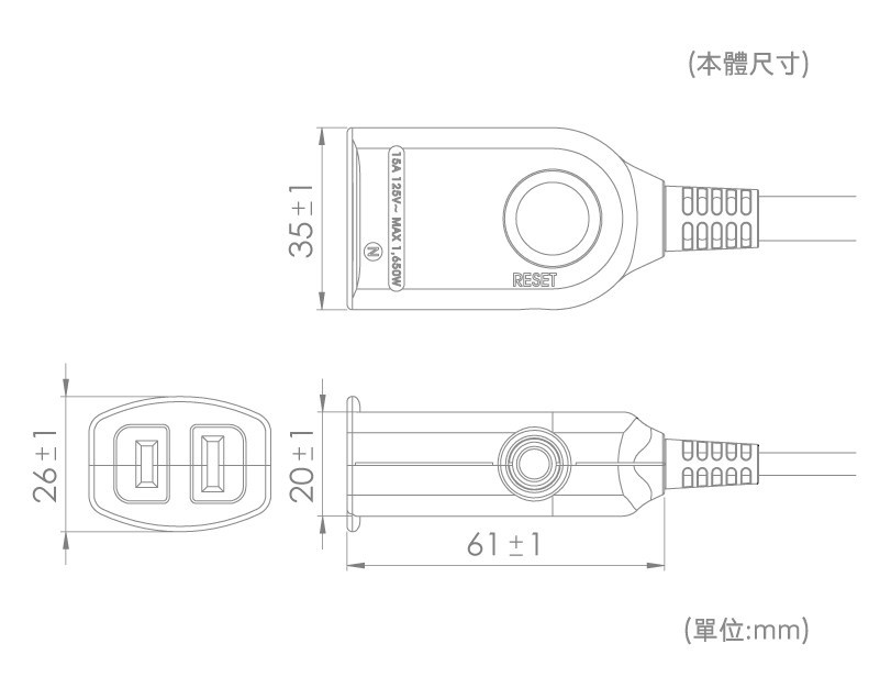 .商品名稱:保護傘 PU-2012 2P 中繼型延長線