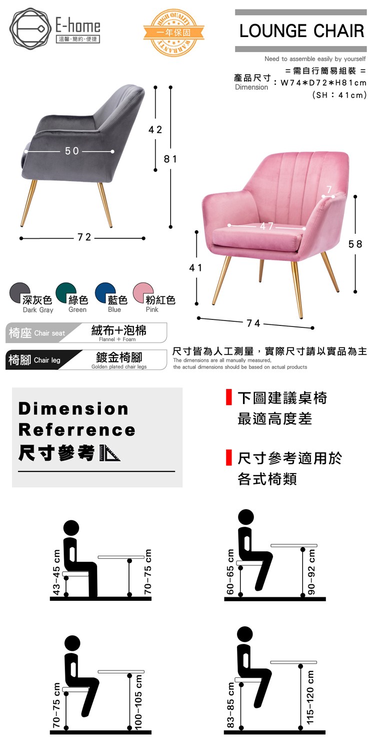 產品尺寸:W74*D72*H81 cm(SH:41 cm)