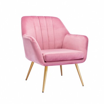 E-home Grace葛瑞絲直紋絨布扶手金腳休閒椅-四色可選粉紅色