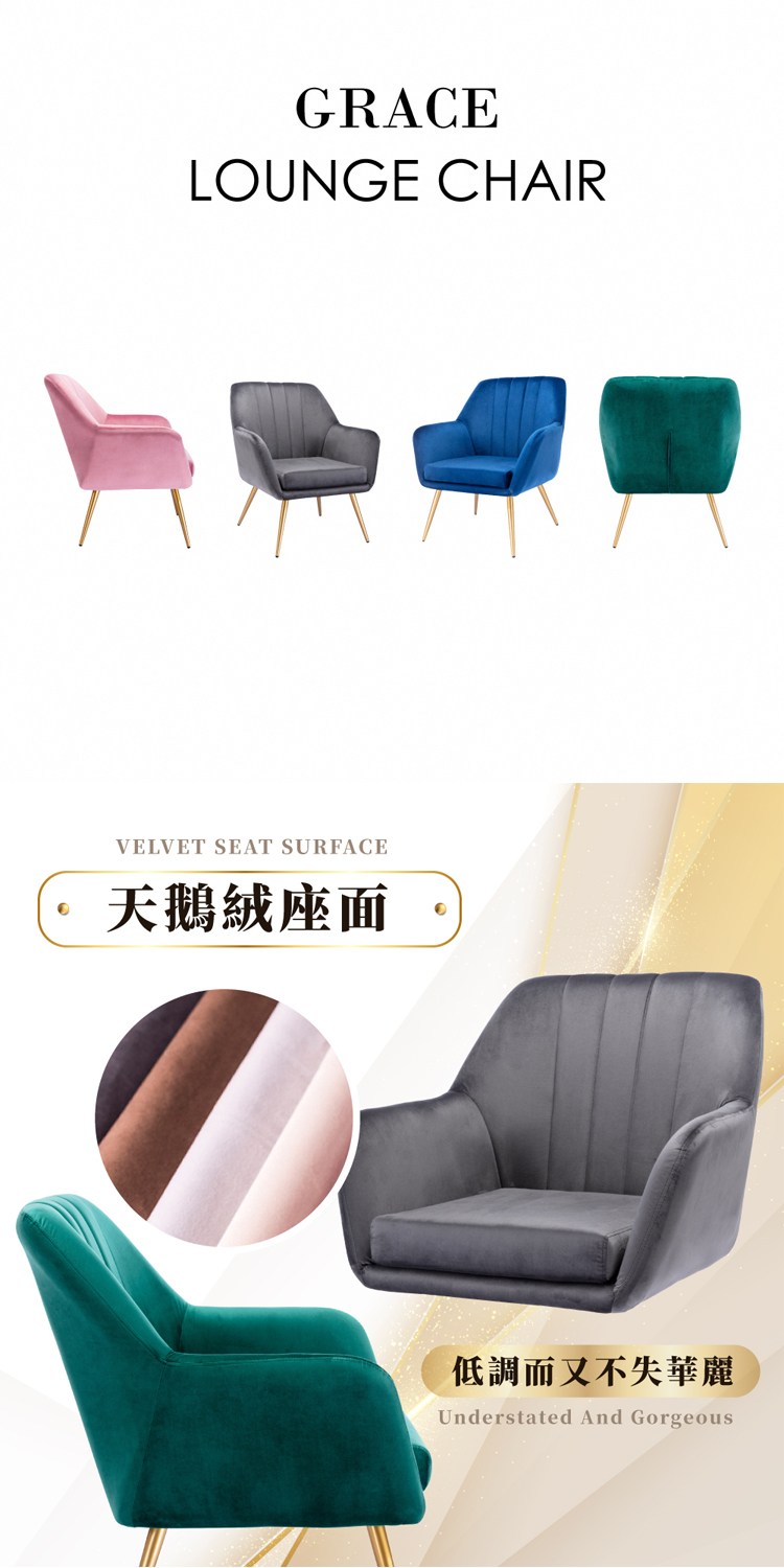 * 金屬鍍金椅腳,美觀穩固又耐用