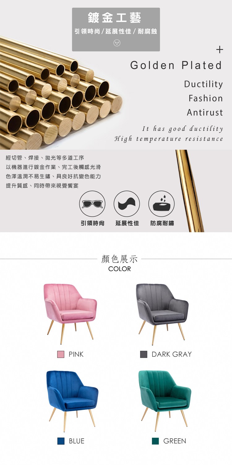 * 金屬鍍金椅腳,美觀穩固又耐用