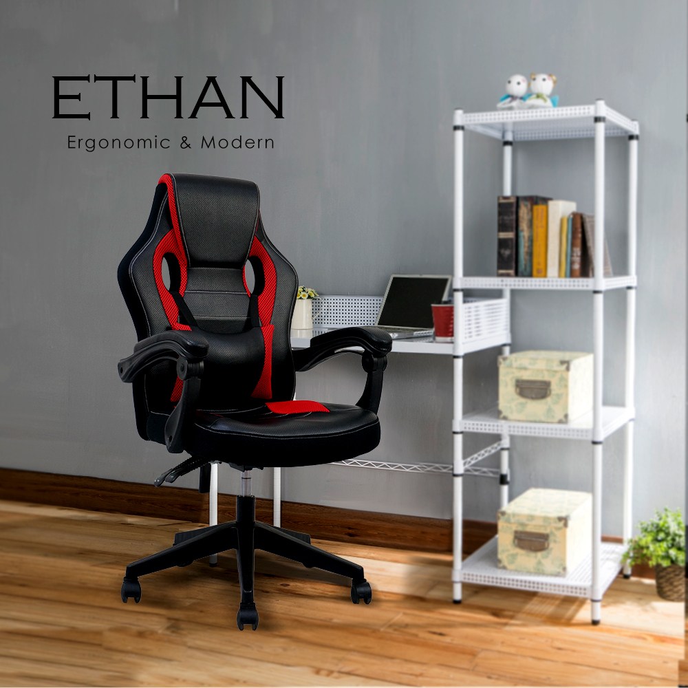 ArcticWolf Ninja忍者網背布面扶手含腳凳金屬腳電競椅-兩色可選紅色