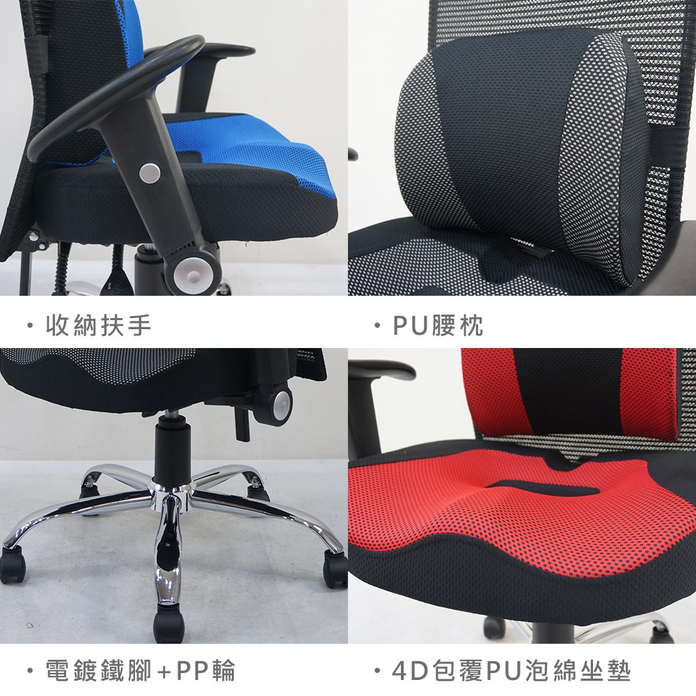 台灣製造 SGS認證 EL-05 透氣辦公椅-藍(60*41*116cm)_廠商直送