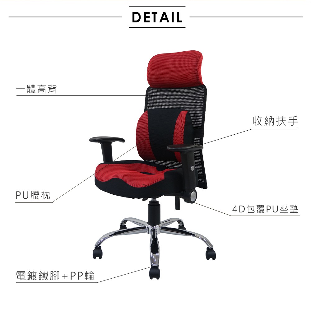 台灣製造 SGS認證 ND-02B 透氣辦公椅-紅(63*49*106cm)_廠商直送