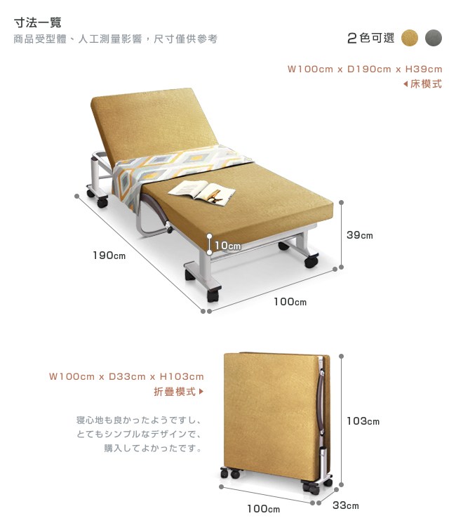 外宿族/工作室首選,可折疊收納騰出空間,讓部屋不會有擁擠感。推薦陪護/值班使用,快速展開折疊床,護理人員能好好休息,也方便就近照顧家人。有朋至遠方來,來客加床,睡感舒適,不用時折疊起來不佔用空間。