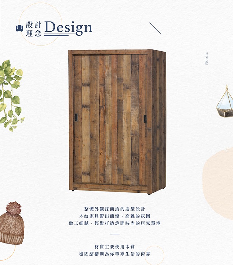 直人木業-TESS淺橡極簡風四抽滑門衣櫃120公分
