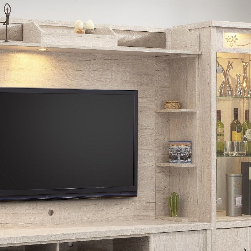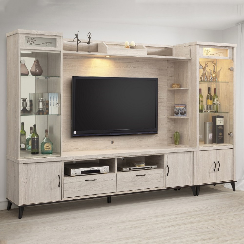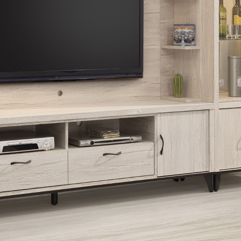 電視櫃附兩抽屜兩開門。