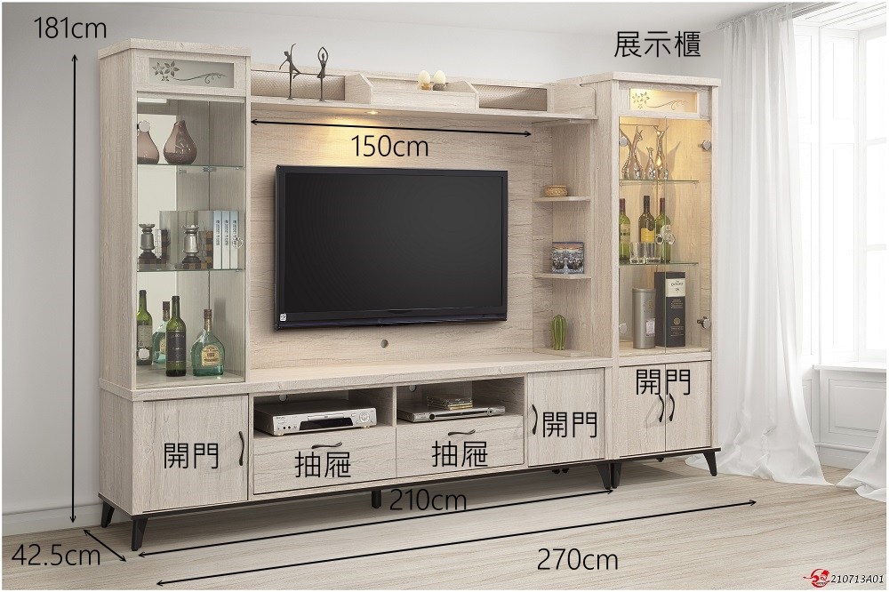 9尺高低櫃(全組)(含展示櫃) 寬 270 公分 X 深 42.5 公分 X 高 181 公分