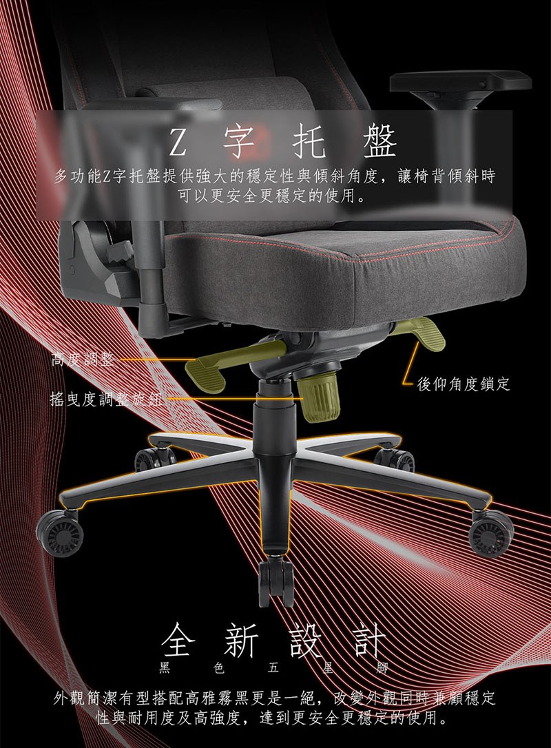ArcticWolf Ninja忍者網背布面扶手含腳凳金屬腳電競椅-兩色可選紅色