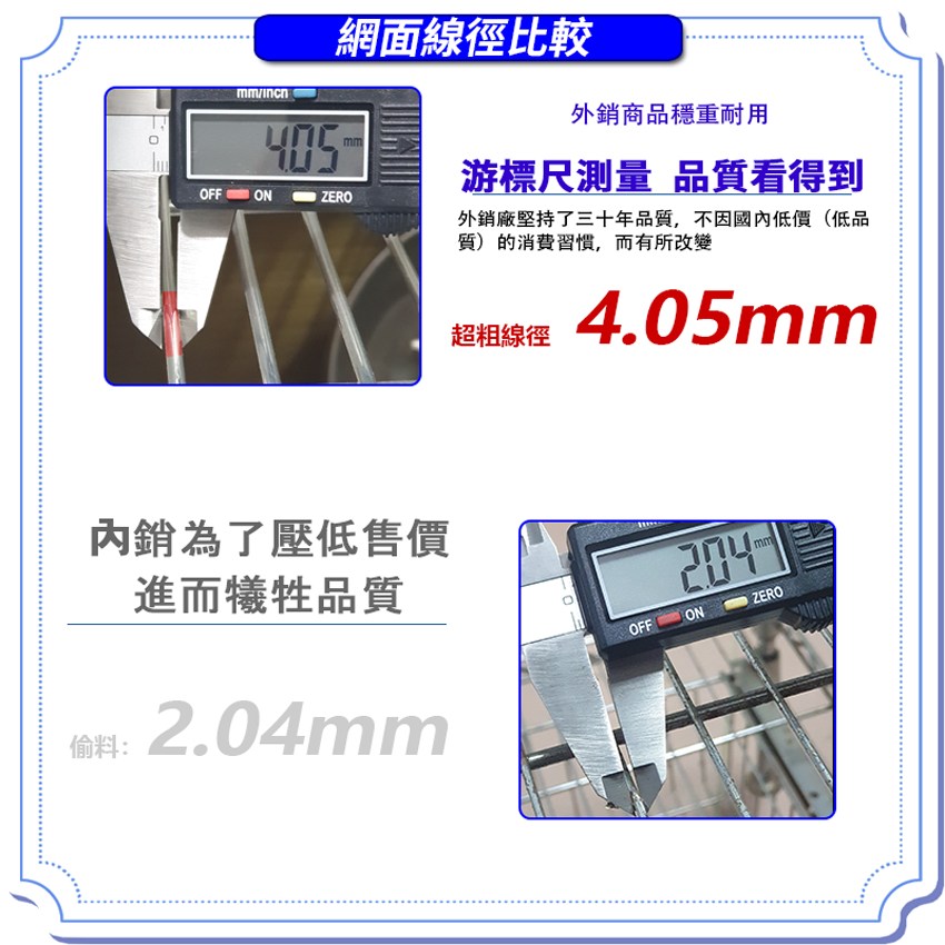 | ●政府立案、合法公司行號,非個人免洗帳號,購物安全有保障 ●三十年的堅持、適合重視品質的您 ●特殊專利結構,中間支撐網片的波浪橫桿,連接到兩邊 ●游標尺測量、品質看得到 ●管壁厚達約1.6mm,一體成形設計 ●電子廠採購最愛,堅固耐用特性,更適合一般使用者 ●重型載重輪,採用插入式固定法,搭配厚達約1.6mm管壁,達到最佳動態荷重 (請看yt影片安裝法) ●重型載重輪(四個一組),動態荷重可達400kg ●靜態荷重可達250kgx5=1250kg(理論值) ●超越平台所有重型、高耐重、堅固耐重、同類型波浪層架之線徑 ●外銷品質,最佳 C/P 比 ●採用電鍍防鏽處理 ●超粗線徑、超越市售尺寸 ●輪高12.5cm,讓您在室外柏油路面會非常好推而不會卡卡的 ●加大煞車板設計,並搭配防撞橡膠,煞車可鎖定輪子轉向與固定輪子的功能,重型載重輪採用滾珠軸承,好拉,耐用! ●滾珠軸承(培林)設計,讓您越重越好推 ●防刮胎面,讓您家中木地板不用擔心會被刮傷 ●本商品網片結構部分採用多三角結構,三角結構為物理學上比起其他結構較為穩固,所以在建築或者主結構用於分散負重時,結構設計師,常會喜歡運用此三角形結構。 ■一般常見的三角形結構的物件有: ■大樓起重機、吊橋、建築物樑柱、腳踏車、波浪層架等.. ●採用三角形結構標準型網片設計,可以使用網片之配件 ●可用於辦公室,廚房、客廳、臥室、浴室等場所 ●可隨意調整網片高低,依照您的擺放物品做高度調整(請用聊聊與小幫手索取影片) ●可放置音響、電視、收納箱、工具箱、印表機、電腦、廚房小家電、小物、烤箱、微波爐..等.. |