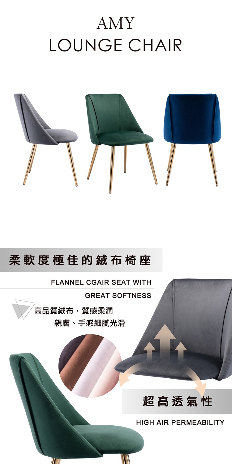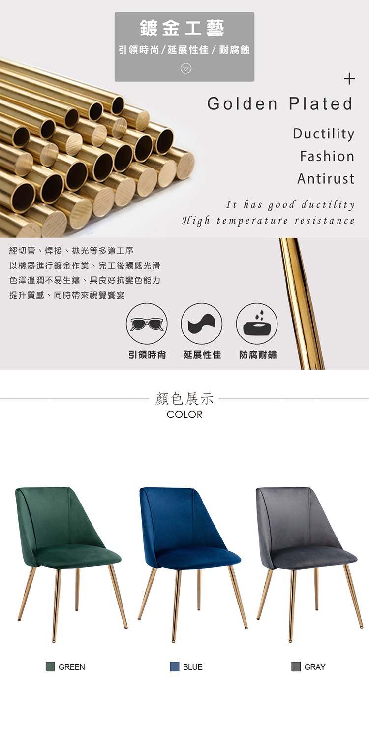 * 金屬鍍金椅腳,美觀穩固又耐用