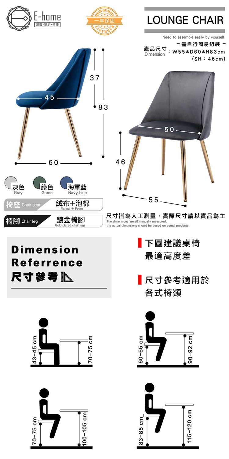產品尺寸:W55*D60*H83 cm(SH:46 cm)