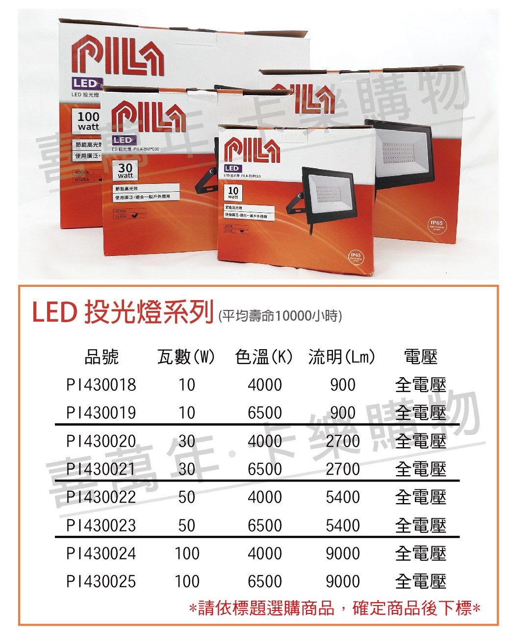 PILA沛亮 LED 100W 6500K 白光 全電壓 投光燈
