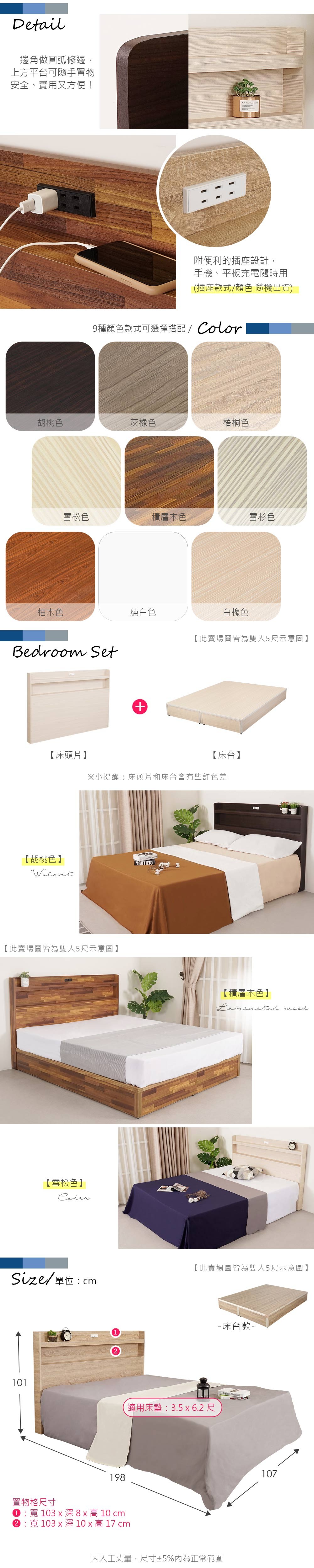 源氏木語西雅圖橡木原木色斜靠雙人5尺150x190夜燈低舖床架 Y90B28 (H014324397)