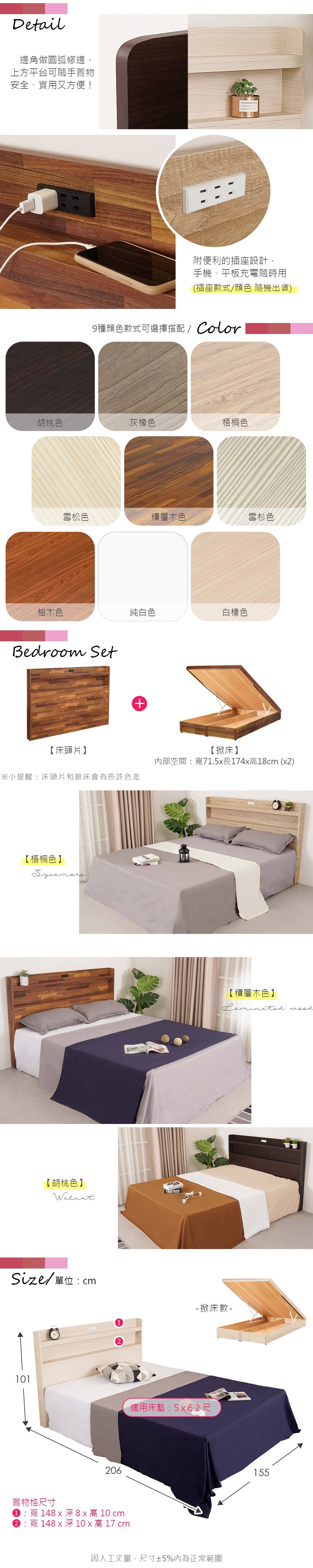 時尚屋 尼克白榆木床箱型5尺USB插座雙人床 DV10-726+UZR11-9981-5 免運費/免組裝/臥室組
