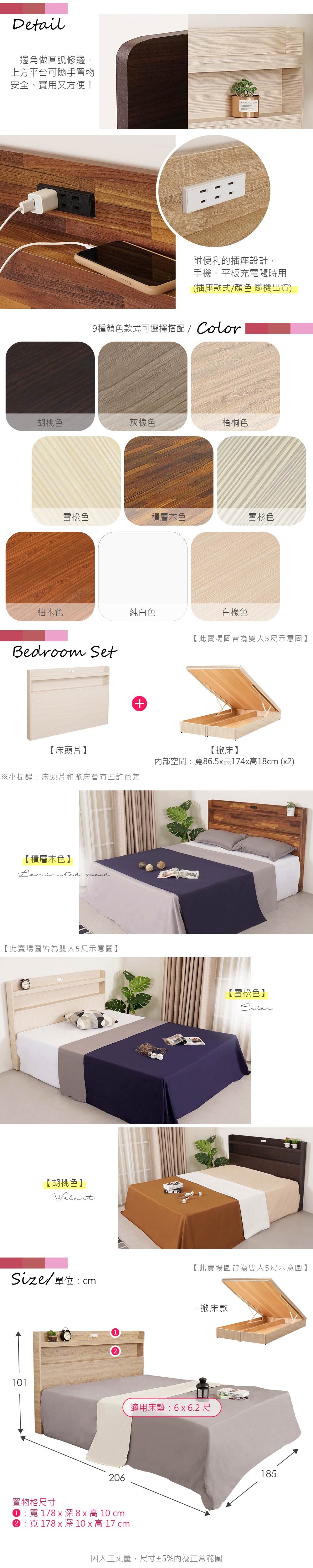 時尚屋 洛菲床箱型6尺插座加大雙人床 5U11-320+318 免運費/免組裝/臥室系列