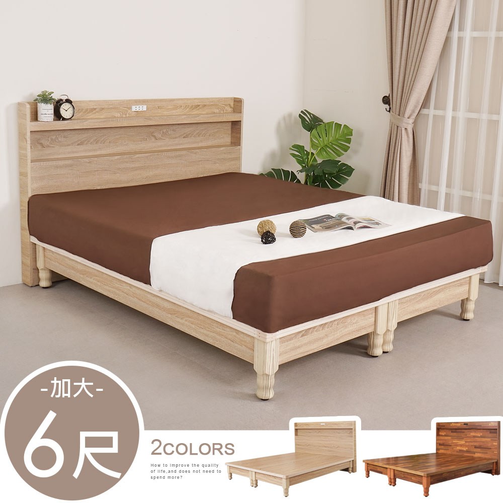 【obis】Loki洛奇雙人加大6尺收納床組_兩件式(床頭+掀床)白橡