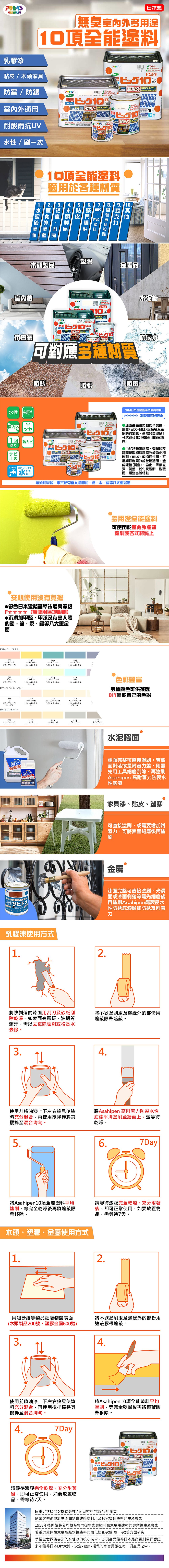 成分:壓克力合成樹脂、氟素、防霉劑、防銹劑、顏料、水