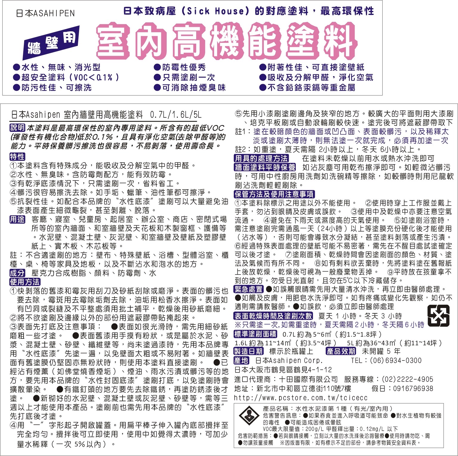 ●本塗料含有特殊成分,能吸收及分解空氣中的甲醛。