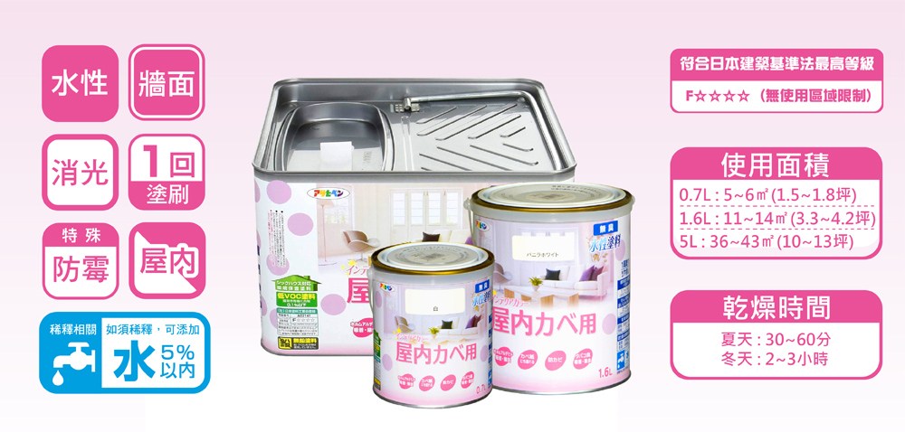 ●水性、無臭味。含防霉劑配方,能有效防霉。
