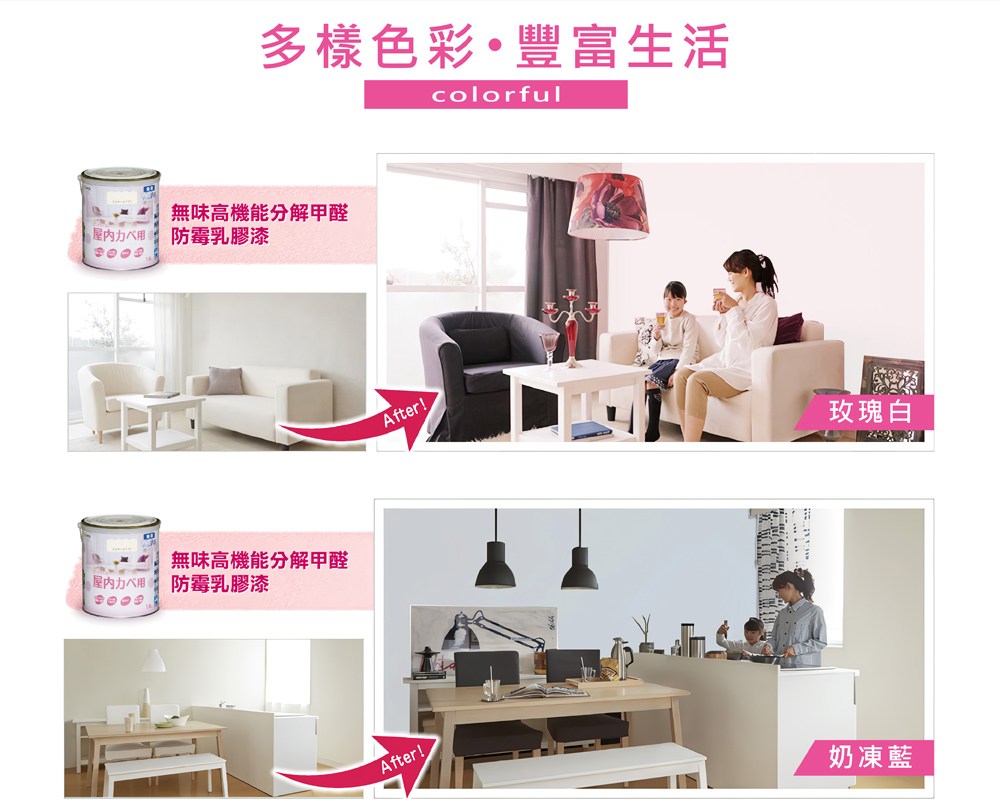 ●水性、無臭味。含防霉劑配方,能有效防霉。