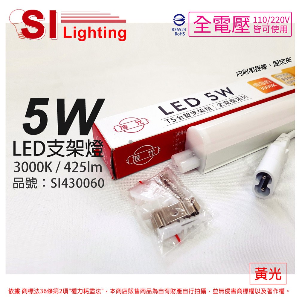 3入 旭光 LED 5W 黃光 1尺 全電壓 兩孔型 支架燈