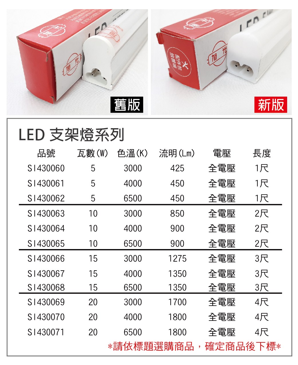 3入 旭光 LED 5W 黃光 1尺 全電壓 兩孔型 支架燈