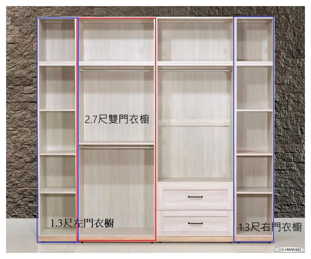 【2.7尺雙門衣櫥+1.3尺右門衣櫥+1.3尺左門衣櫥】