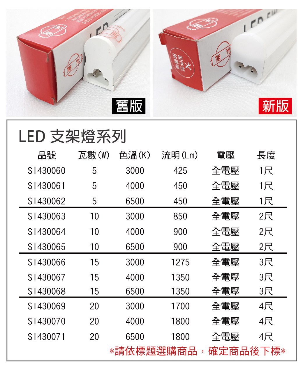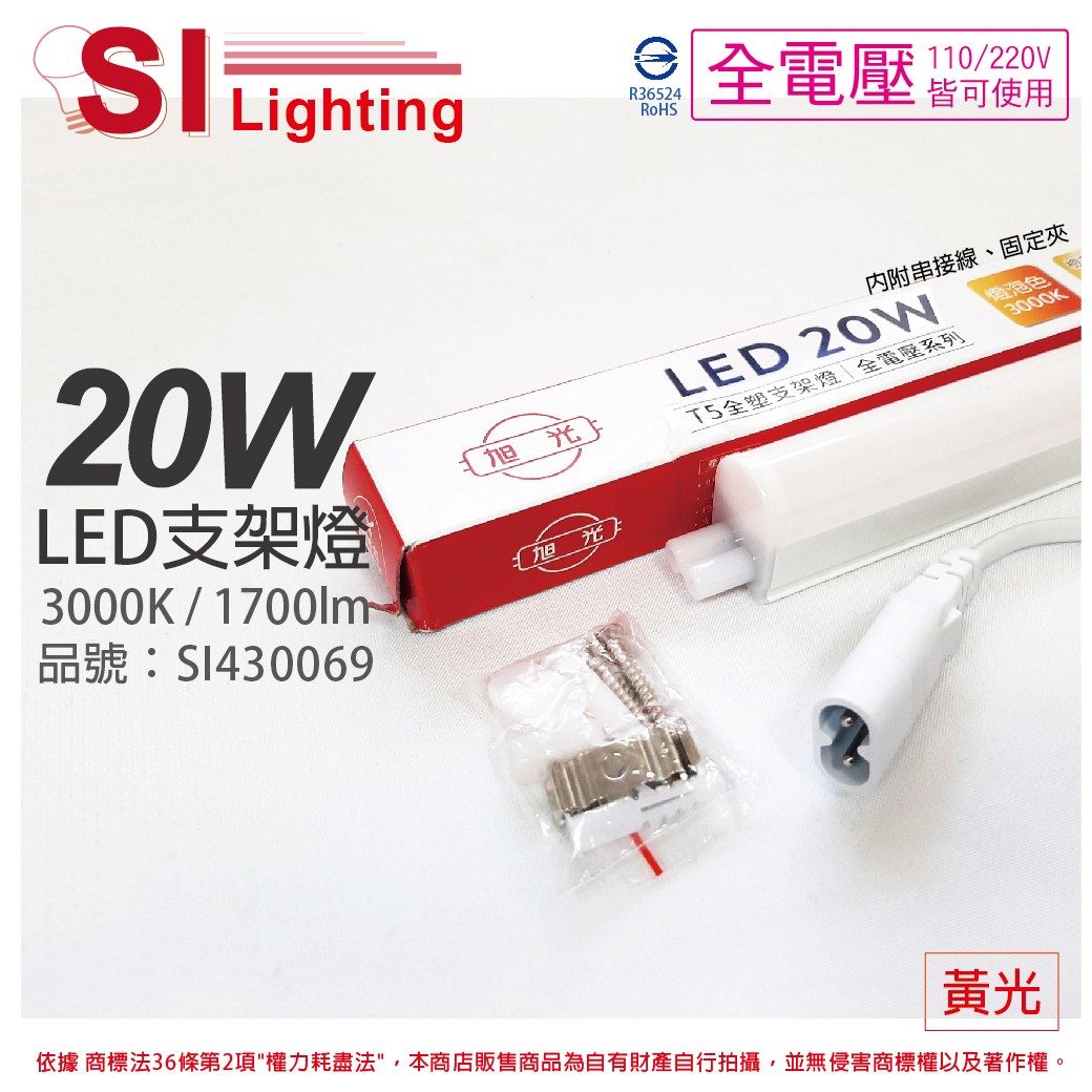3入 旭光 LED 5W 黃光 1尺 全電壓 兩孔型 支架燈