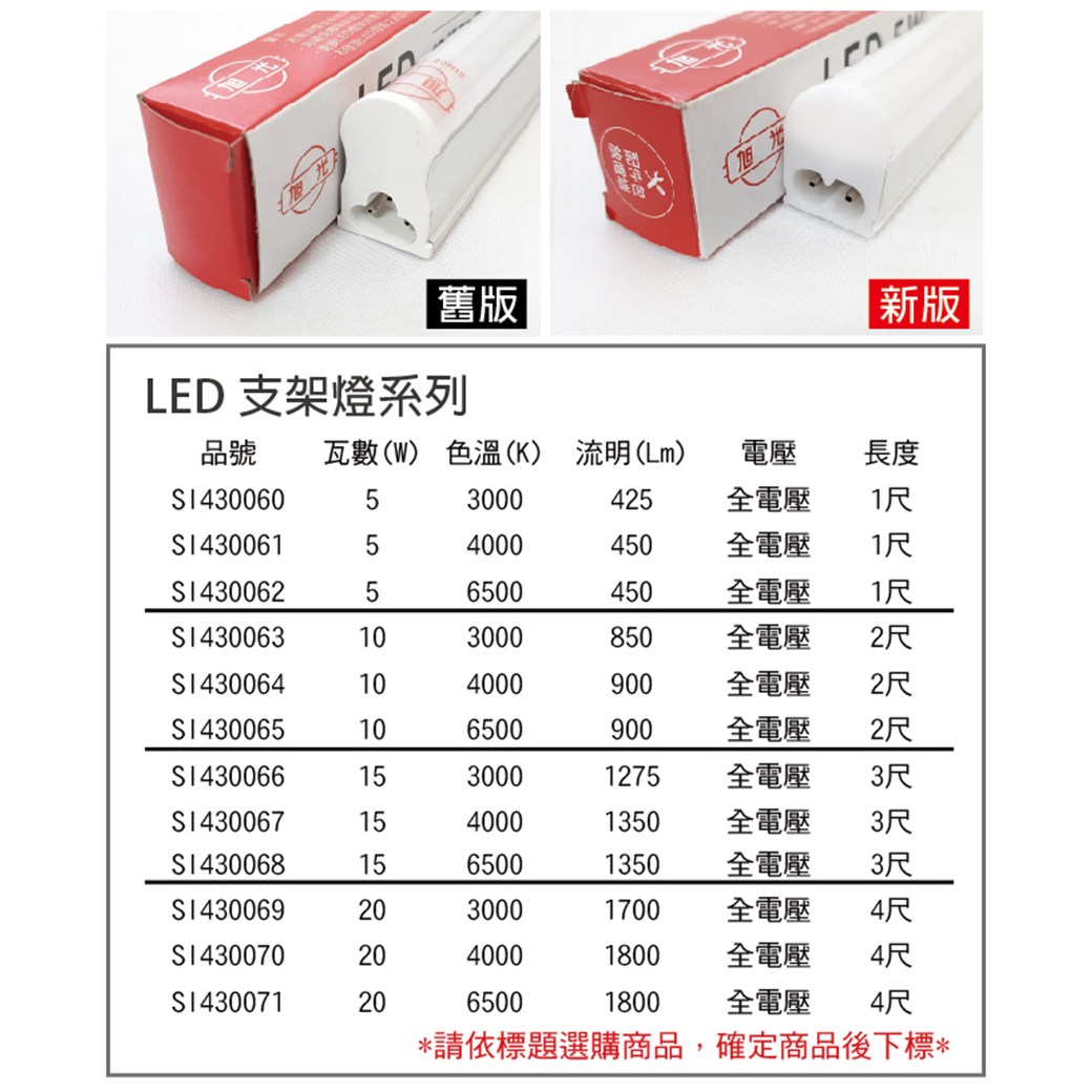 3入 旭光 LED 5W 黃光 1尺 全電壓 兩孔型 支架燈