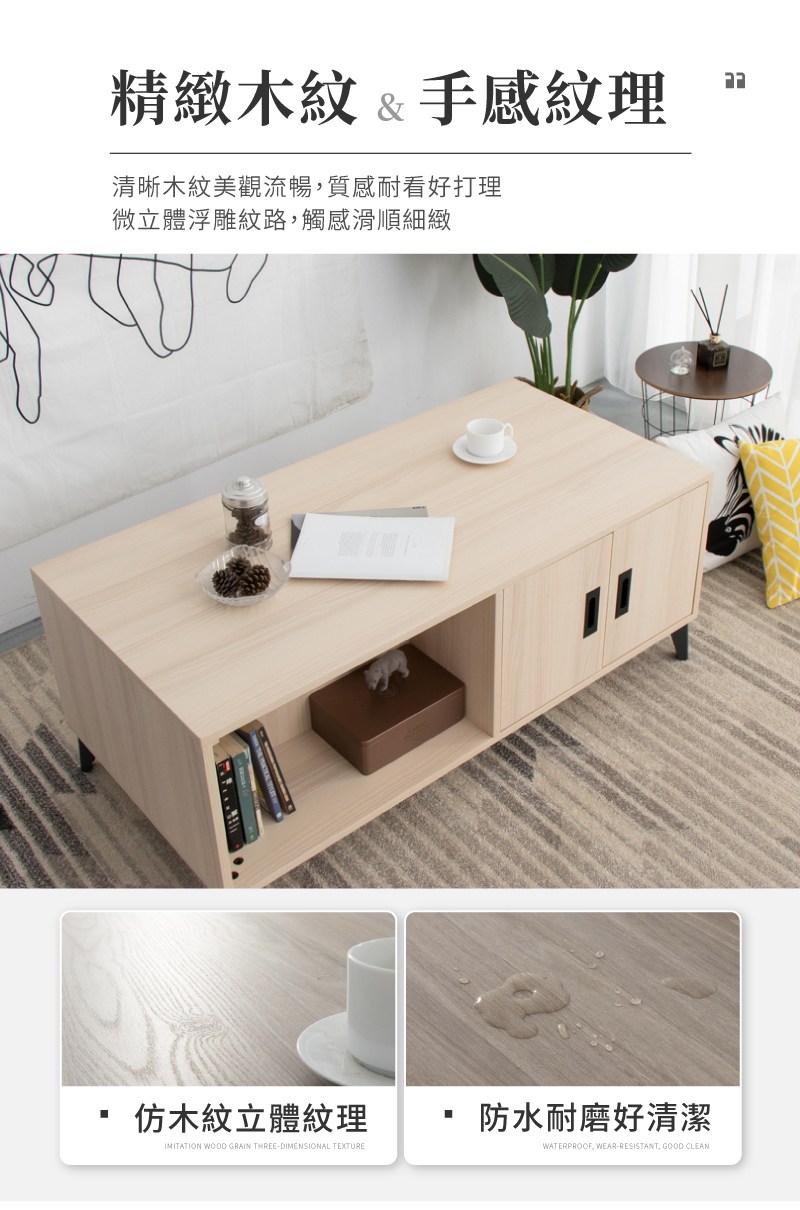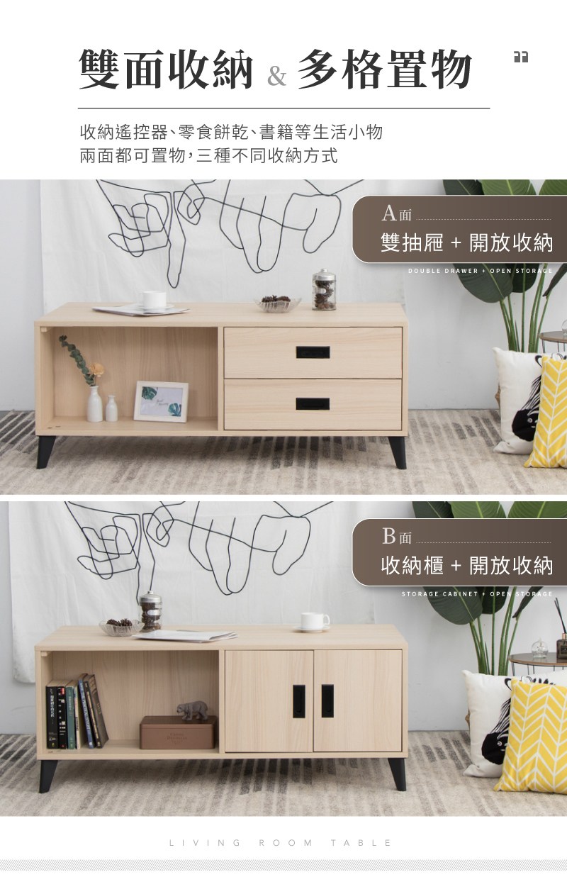hoi! 林氏木業簡約雙色1.2M收納茶几 OV1L-原木+灰