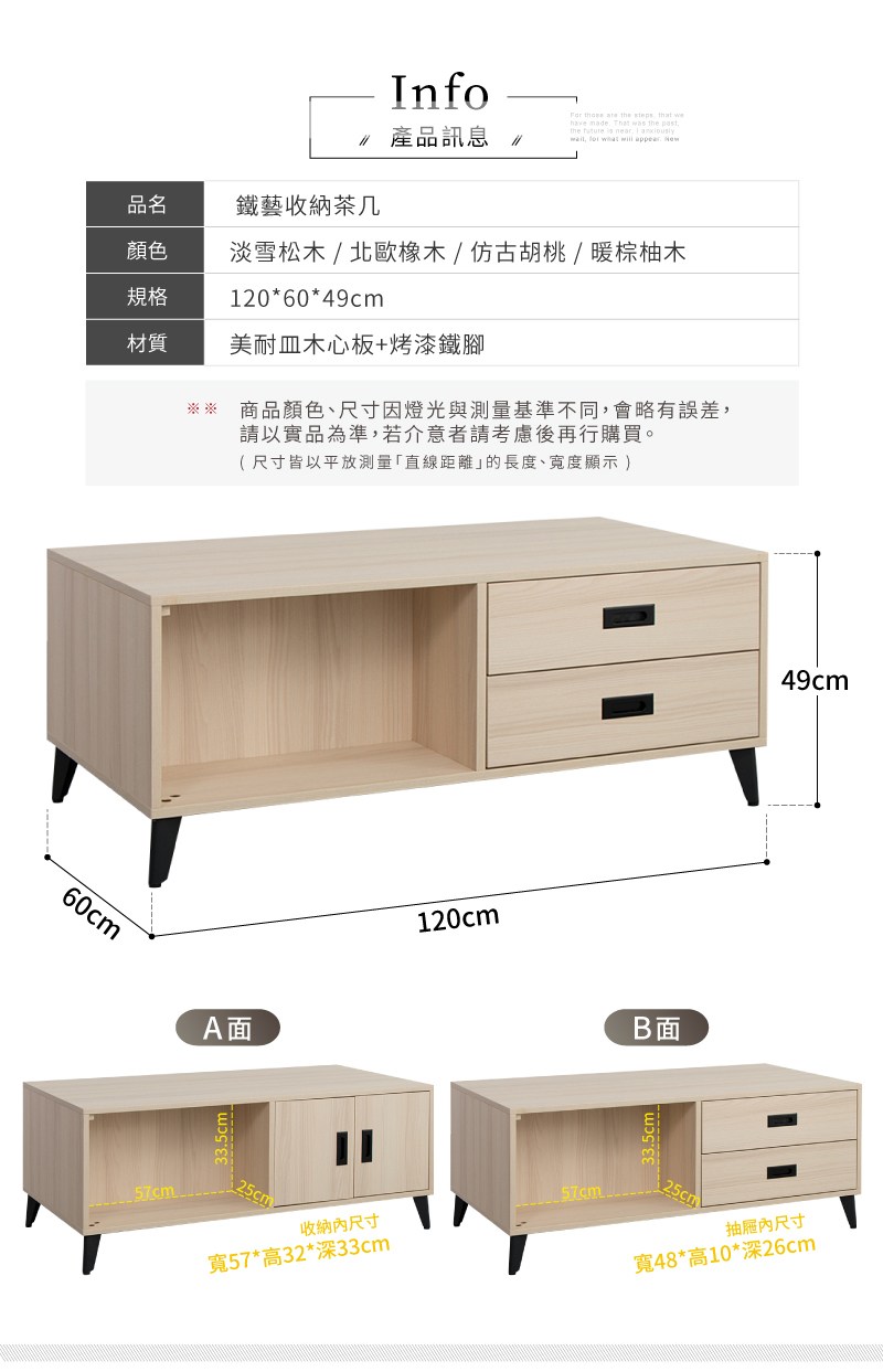 JP Kagu台灣製工業風大茶几-寬120cm(矮桌/咖啡桌/收納桌)木紋灰