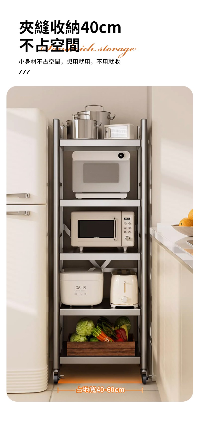 40/45cm窄夾縫收納架不銹鋼廚房冰箱置物架衛生間縫隙儲物柜子