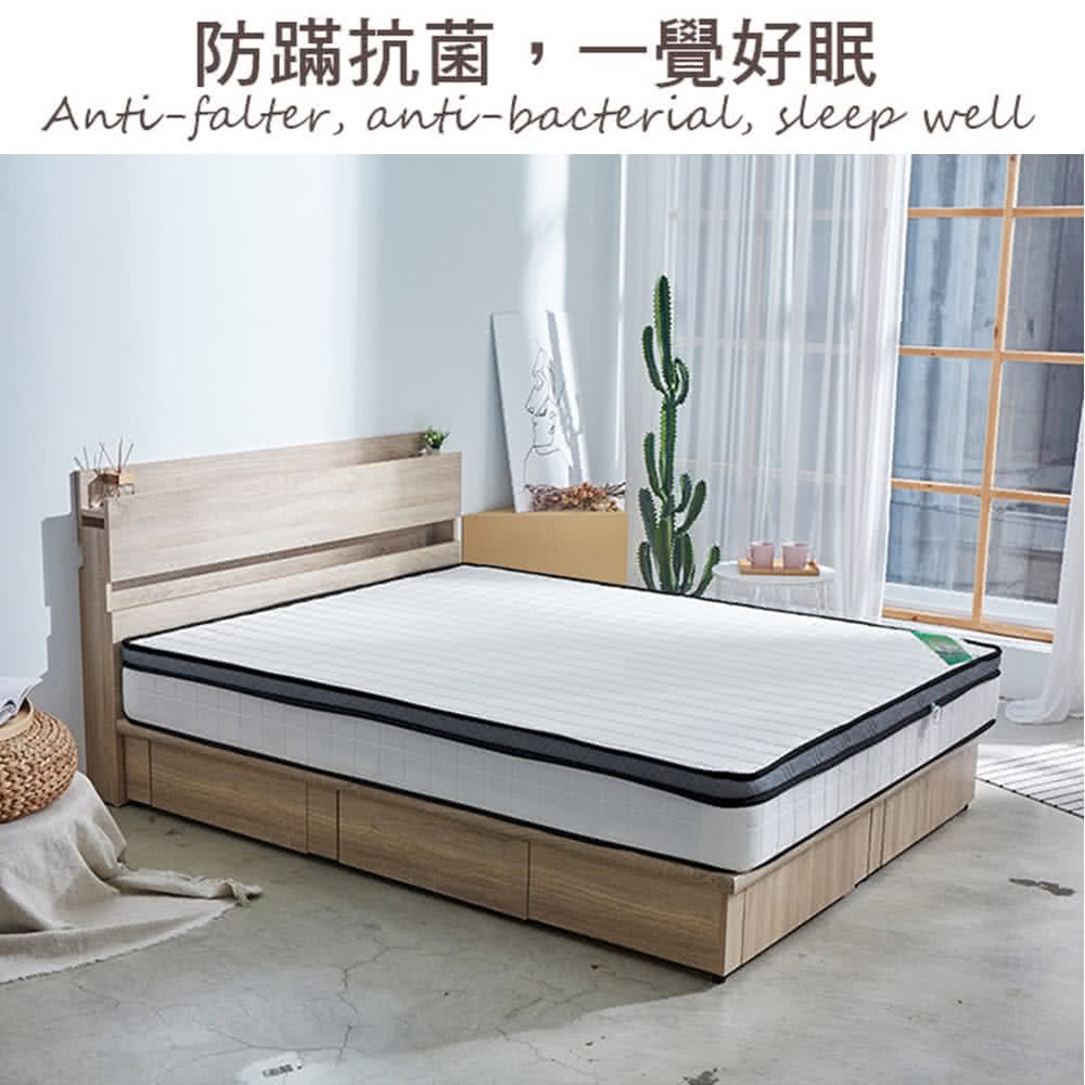 傢俱工場-吉米 MIT木心板床組 (插座床箱+床底+獨立筒墊) - 雙大6尺梧桐