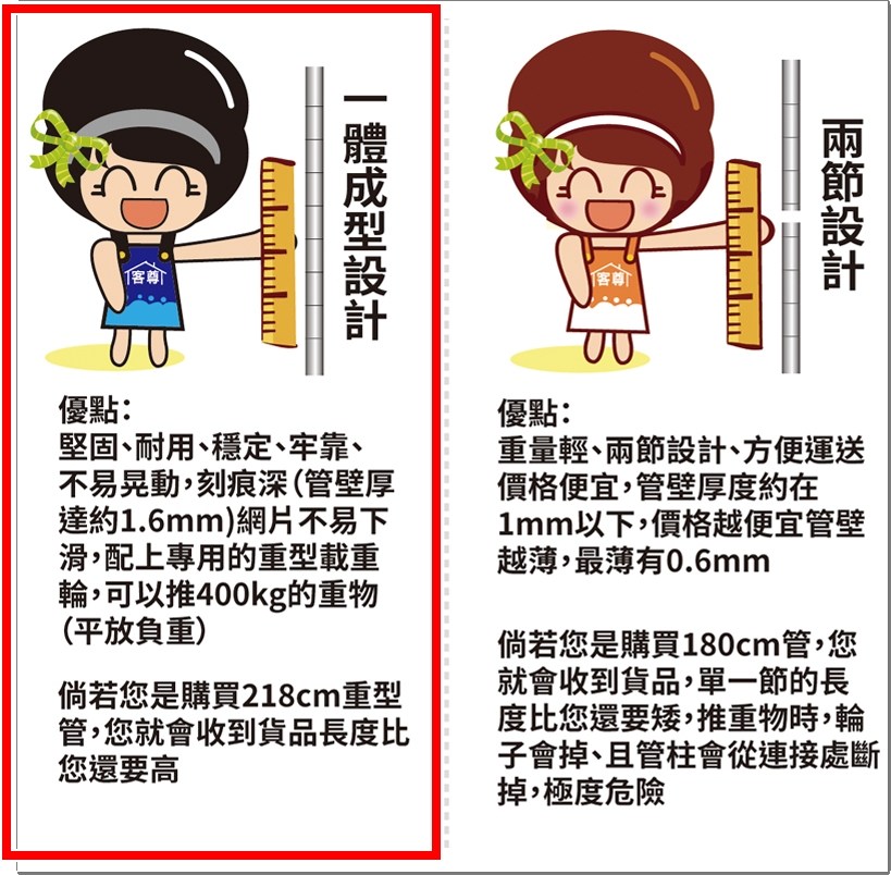 | ●政府立案、合法公司行號,非個人免洗帳號,購物安全有保障 ●三十年的堅持、適合重視品質的您 ●特殊專利結構,中間支撐網片的波浪橫桿,連接到兩邊 ●游標尺測量、品質看得到 ●管壁厚達約1.6mm,一體成形設計 ●電子廠採購最愛,堅固耐用特性,更適合一般使用者 ●重型載重輪,採用插入式固定法,搭配厚達約1.6mm管壁,達到最佳動態荷重 (請看yt影片安裝法) ●重型載重輪(四個一組),動態荷重可達400kg ●靜態荷重可達250kgx5=1250kg(理論值) ●超越平台所有重型、高耐重、堅固耐重、同類型波浪層架之線徑 ●外銷品質,最佳 C/P 比 ●採用電鍍防鏽處理 ●超粗線徑、超越市售尺寸 ●輪高12.5cm,讓您在室外柏油路面會非常好推而不會卡卡的 ●加大煞車板設計,並搭配防撞橡膠,煞車可鎖定輪子轉向與固定輪子的功能,重型載重輪採用滾珠軸承,好拉,耐用! ●滾珠軸承(培林)設計,讓您越重越好推 ●防刮胎面,讓您家中木地板不用擔心會被刮傷 ●本商品網片結構部分採用多三角結構,三角結構為物理學上比起其他結構較為穩固,所以在建築或者主結構用於分散負重時,結構設計師,常會喜歡運用此三角形結構。 ■一般常見的三角形結構的物件有: ■大樓起重機、吊橋、建築物樑柱、腳踏車、波浪層架等.. ●採用三角形結構標準型網片設計,可以使用網片之配件 ●可用於辦公室,廚房、客廳、臥室、浴室等場所 ●可隨意調整網片高低,依照您的擺放物品做高度調整(請用聊聊與小幫手索取影片) ●可放置音響、電視、收納箱、工具箱、印表機、電腦、廚房小家電、小物、烤箱、微波爐..等.. |