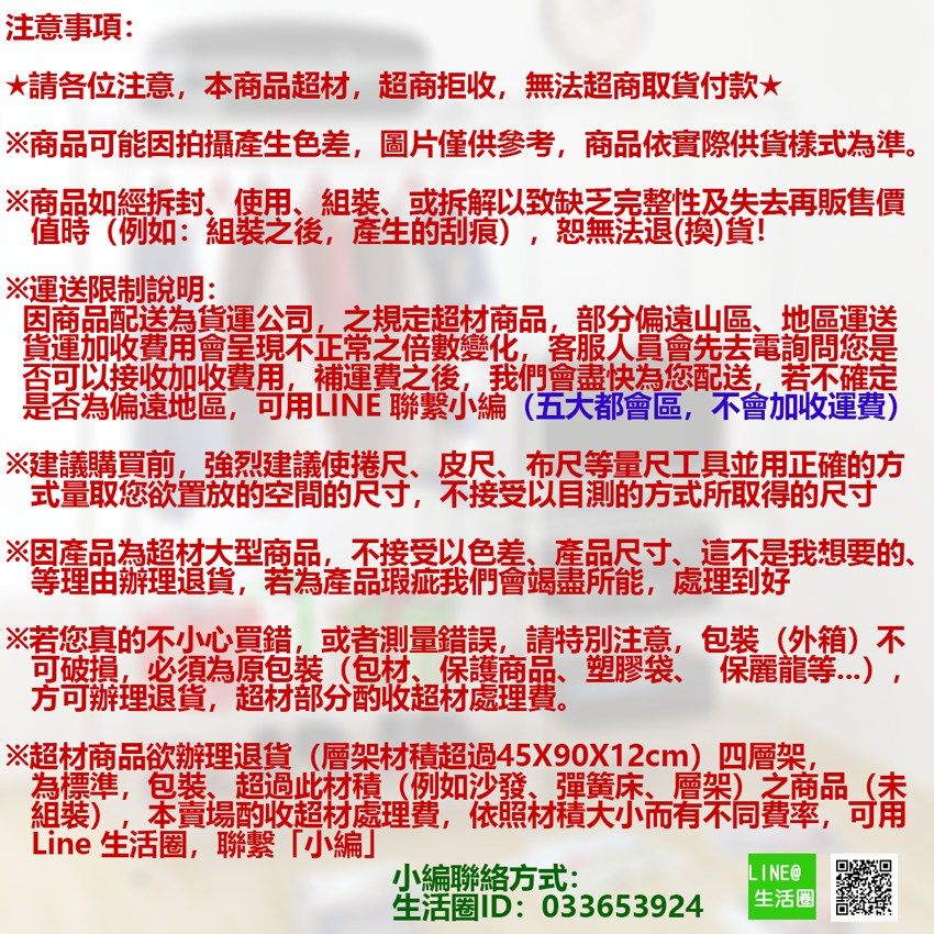 | ●政府立案、合法公司行號,非個人免洗帳號,購物安全有保障 ●三十年的堅持、適合重視品質的您 ●特殊專利結構,中間支撐網片的波浪橫桿,連接到兩邊 ●游標尺測量、品質看得到 ●管壁厚達約1.6mm,一體成形設計 ●電子廠採購最愛,堅固耐用特性,更適合一般使用者 ●重型載重輪,採用插入式固定法,搭配厚達約1.6mm管壁,達到最佳動態荷重 (請看yt影片安裝法) ●重型載重輪(四個一組),動態荷重可達400kg ●靜態荷重可達250kgx5=1250kg(理論值) ●超越平台所有重型、高耐重、堅固耐重、同類型波浪層架之線徑 ●外銷品質,最佳 C/P 比 ●採用電鍍防鏽處理 ●超粗線徑、超越市售尺寸 ●輪高12.5cm,讓您在室外柏油路面會非常好推而不會卡卡的 ●加大煞車板設計,並搭配防撞橡膠,煞車可鎖定輪子轉向與固定輪子的功能,重型載重輪採用滾珠軸承,好拉,耐用! ●滾珠軸承(培林)設計,讓您越重越好推 ●防刮胎面,讓您家中木地板不用擔心會被刮傷 ●本商品網片結構部分採用多三角結構,三角結構為物理學上比起其他結構較為穩固,所以在建築或者主結構用於分散負重時,結構設計師,常會喜歡運用此三角形結構。 ■一般常見的三角形結構的物件有: ■大樓起重機、吊橋、建築物樑柱、腳踏車、波浪層架等.. ●採用三角形結構標準型網片設計,可以使用網片之配件 ●可用於辦公室,廚房、客廳、臥室、浴室等場所 ●可隨意調整網片高低,依照您的擺放物品做高度調整(請用聊聊與小幫手索取影片) ●可放置音響、電視、收納箱、工具箱、印表機、電腦、廚房小家電、小物、烤箱、微波爐..等.. |