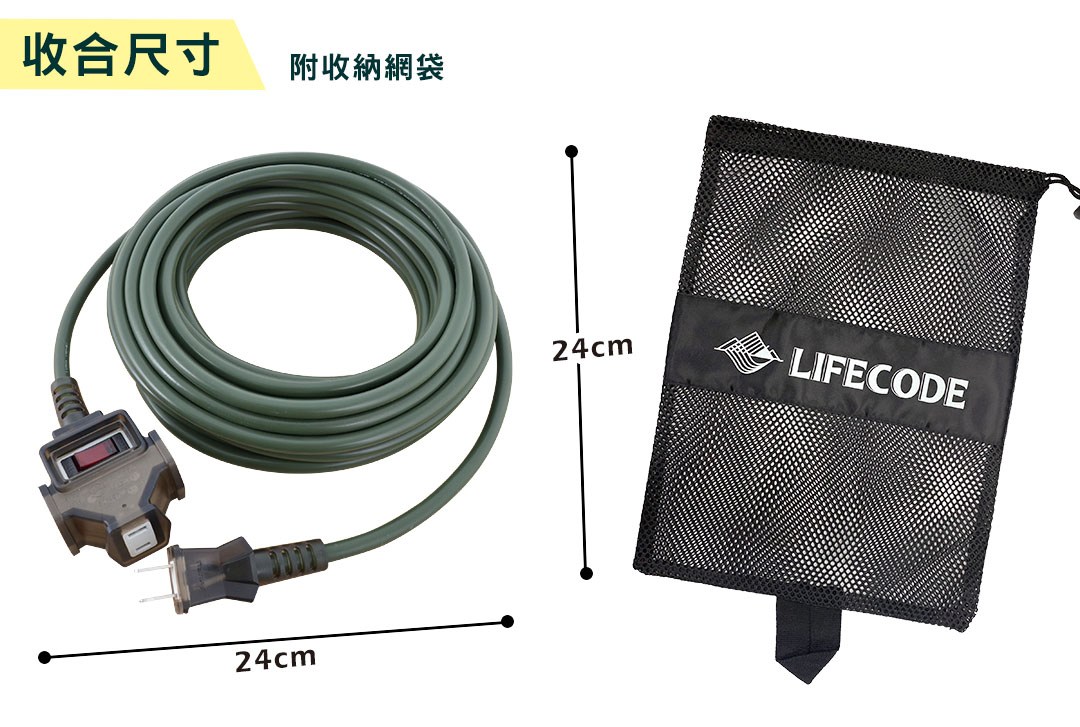 LIFECODE《2P1擴3插1開》動力延長線-10米(附網袋) 軍綠