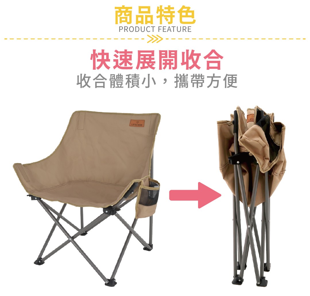 LIFECODE《美杜莎》加寬折疊椅-2色可選卡其