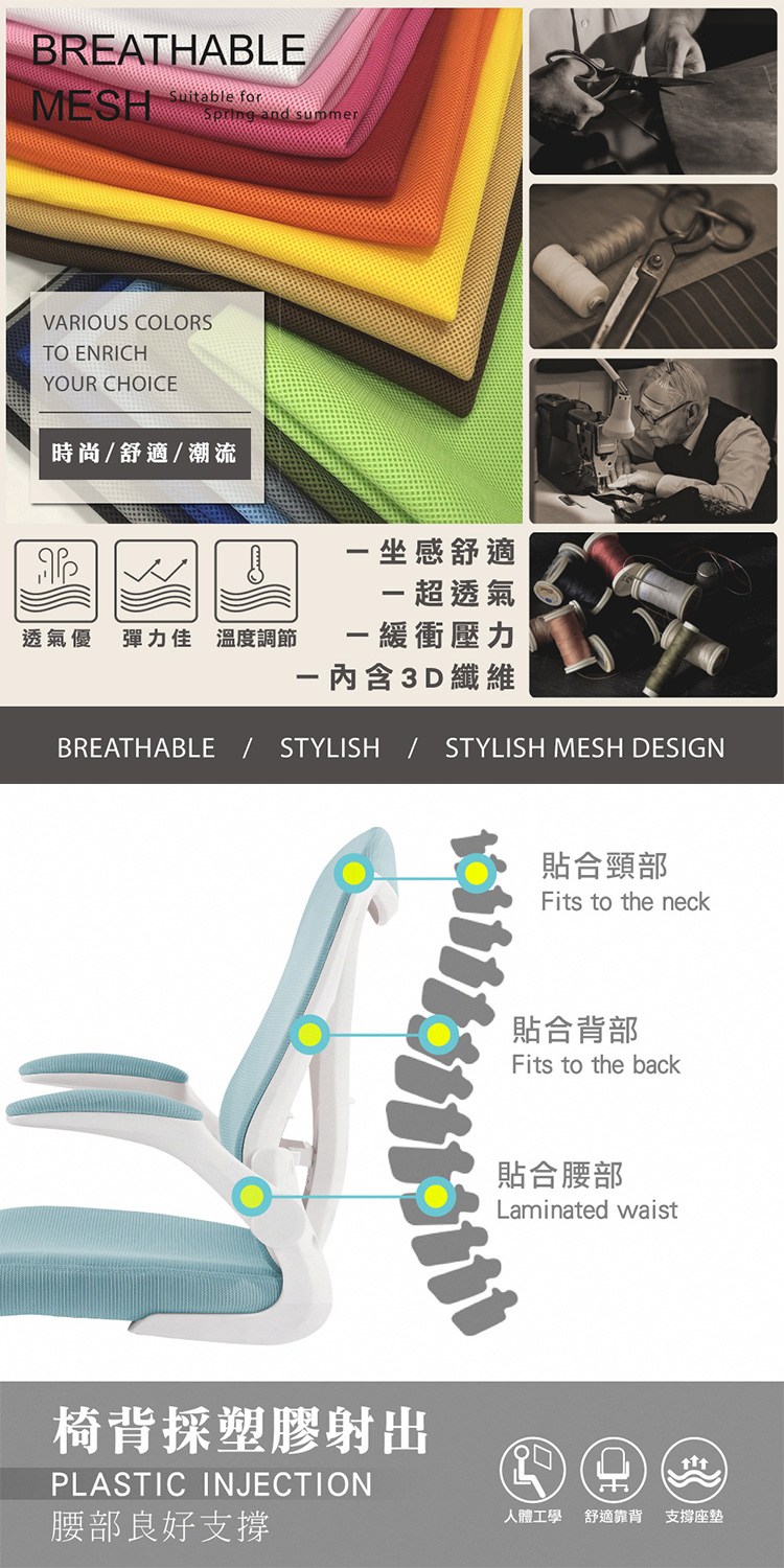 * 椅背採塑膠射出、腰部良好支撐