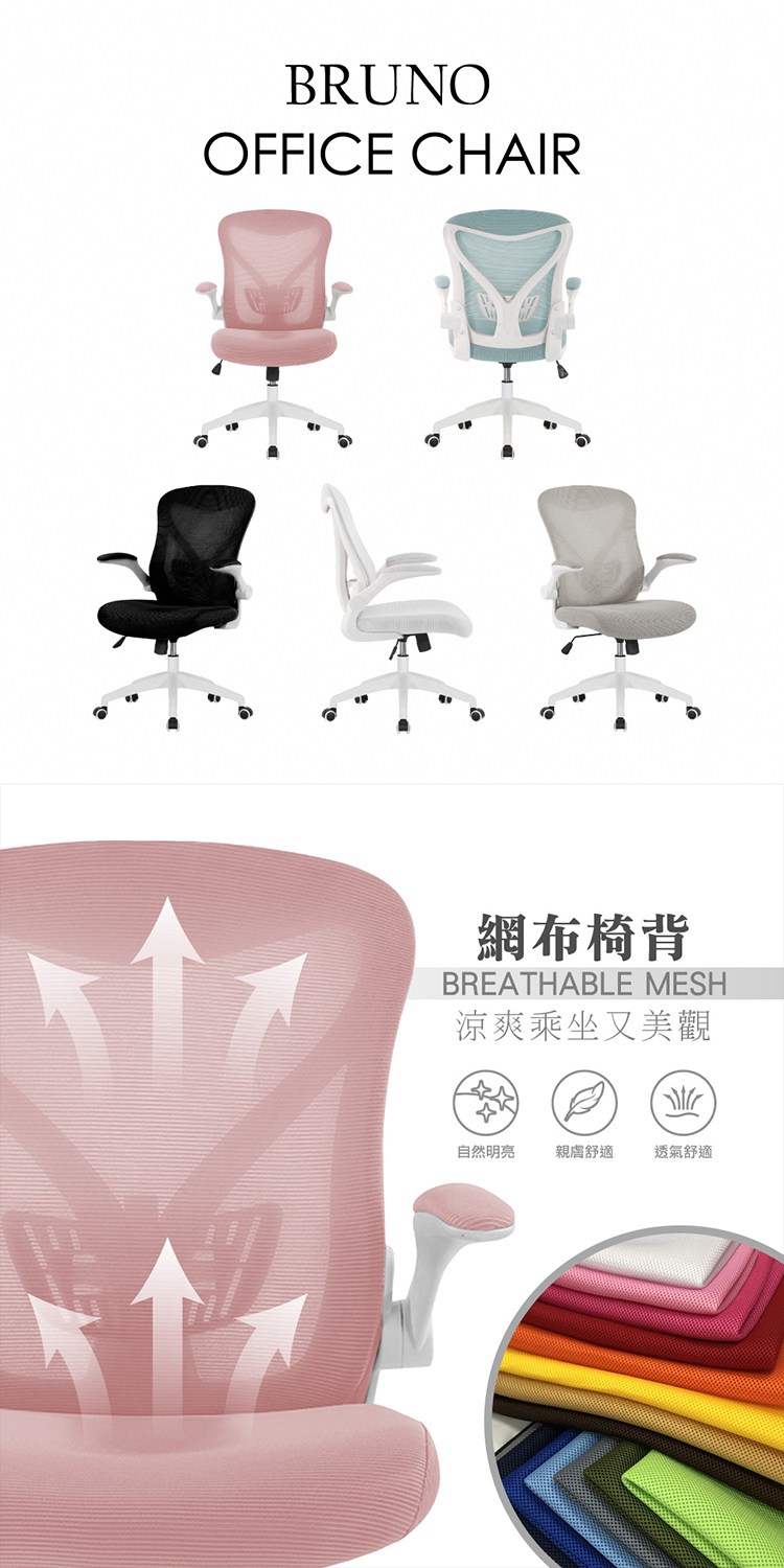 [E-home]Bruno布魯諾網布可旋轉扶手電腦椅,現代感強烈的造型辦公椅,增添室內設計亮麗的擺設。