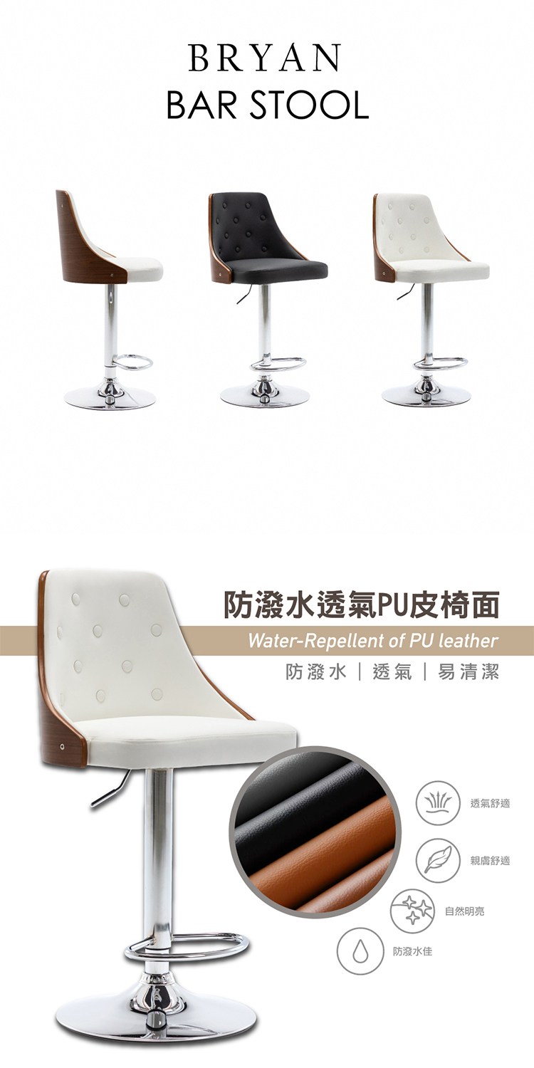 [E-home]Trey特雷曲木PU拉扣可調式吧檯椅,經典時尚造型適合搭配各式空間,輕鬆點亮生活的品味。