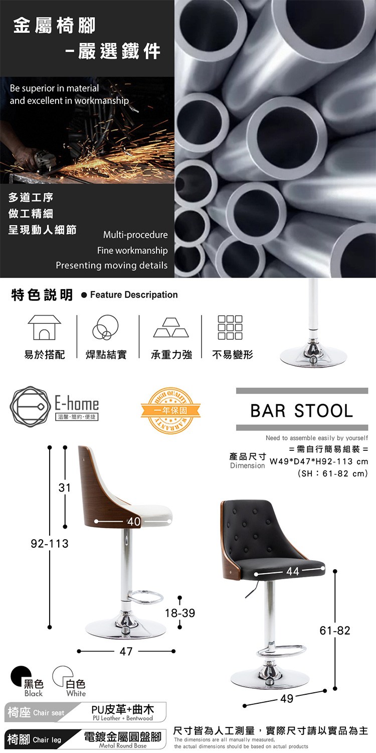 正常使用下,結構保固一年,立即添加到購物車,您將體驗此吧檯椅帶給您的生活變化!