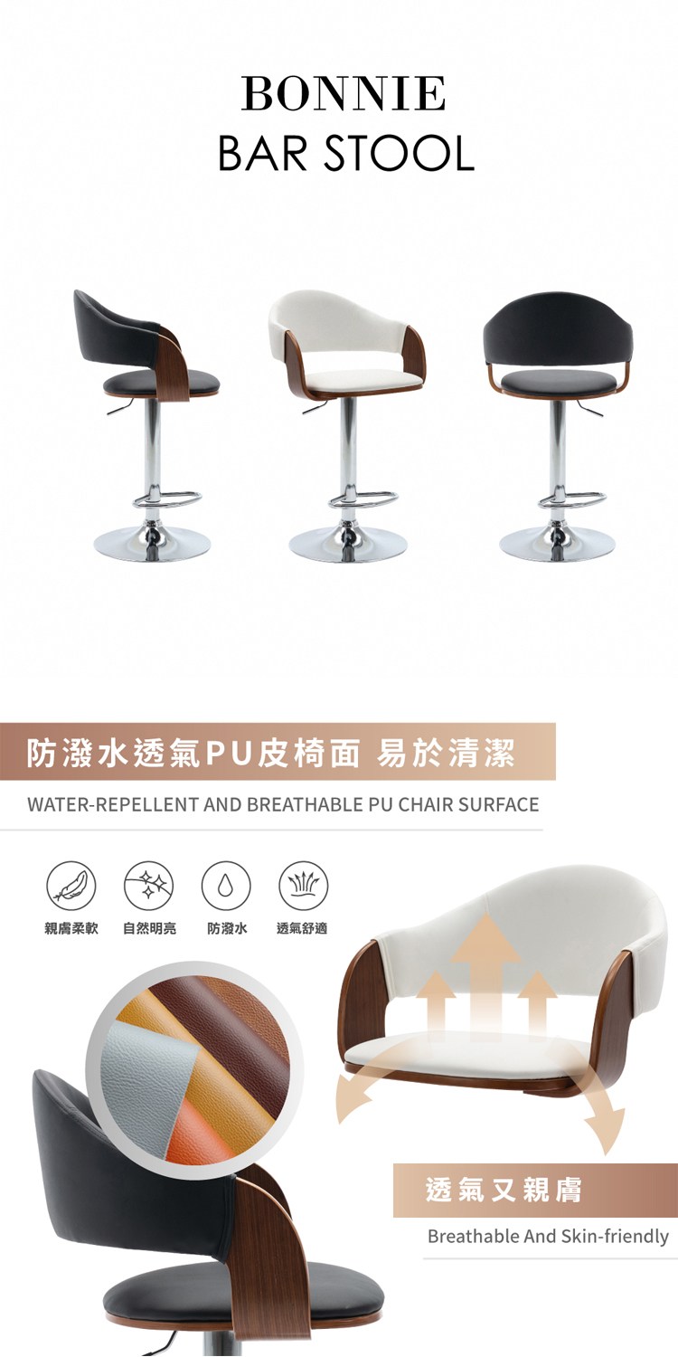 [E-home]Bonnie邦妮曲木PU可調式吧檯椅,經典時尚造型適合搭配各式空間,輕鬆點亮生活的品味。