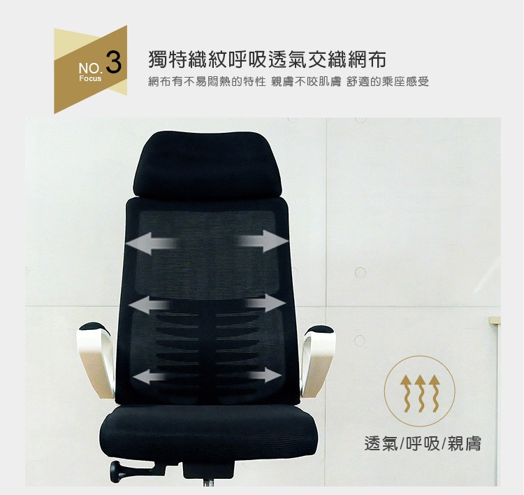 ◆椅背使用獨特織紋呼吸透氣網布,網布有不易悶熱特性親膚舒適絕對首選。